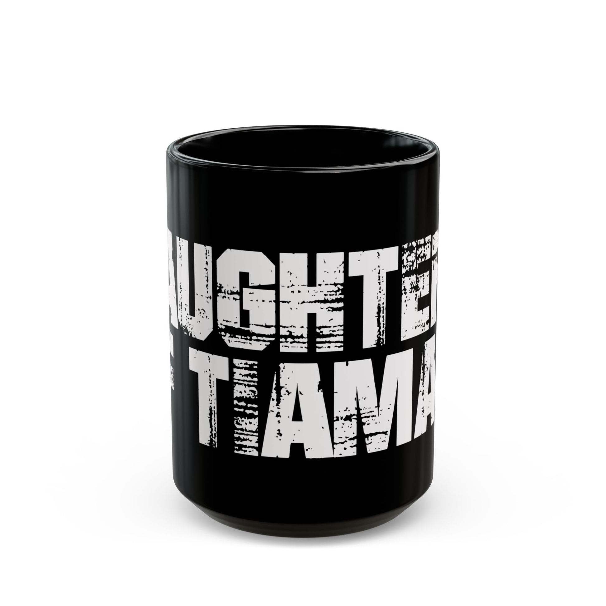Warm your soul with a nice cup of Sacred Tea with MahMah Tea's SACRED black ceramic mug.