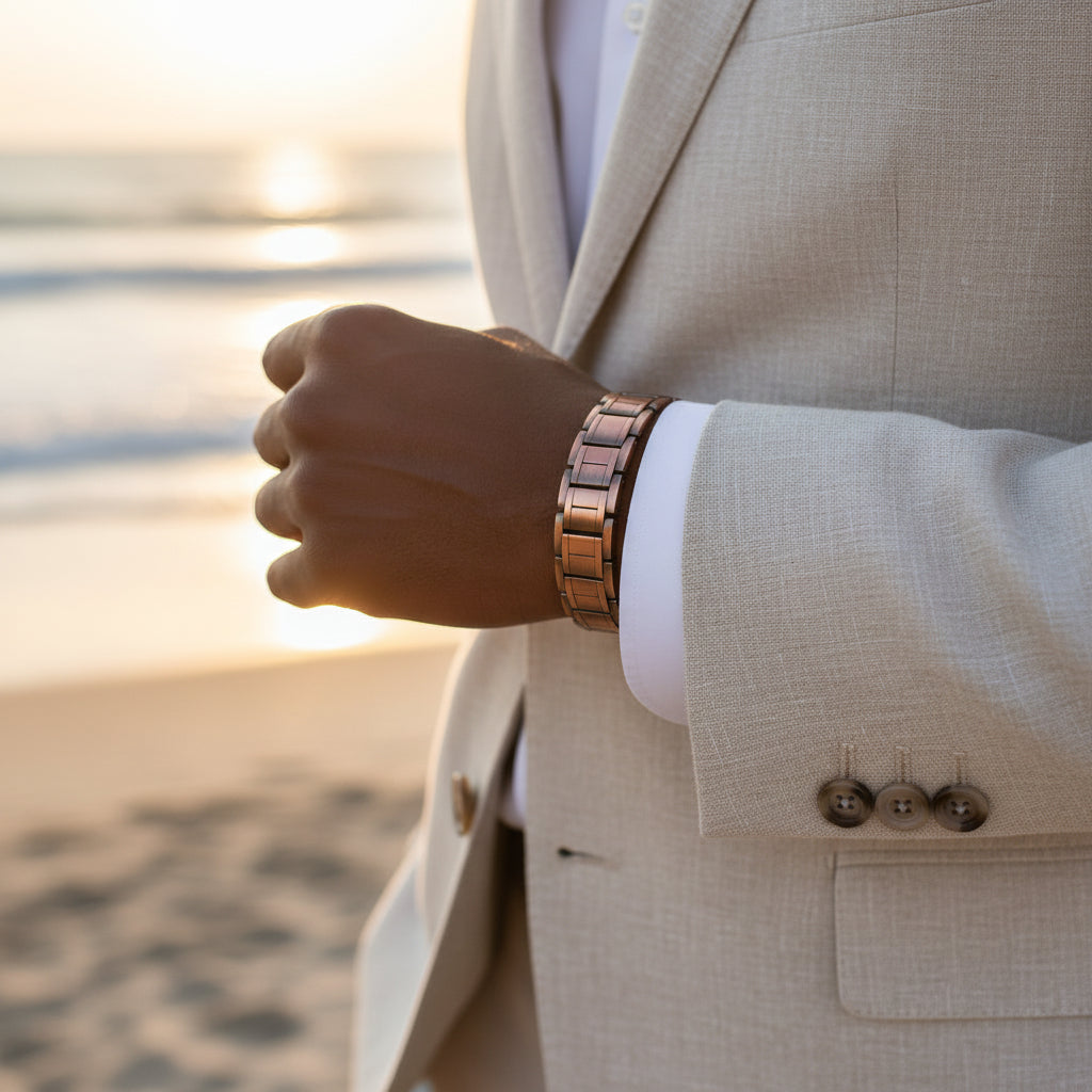 Designed for the modern man who walks his path with intention, the hypoallergenic, solid copper design sits comfortably on the wrist, while the adjustable folding clasp ensures a perfect fit. Waterproof and lead- and nickel-free, it moves with you—through work, rituals, or meditation—without compromise.