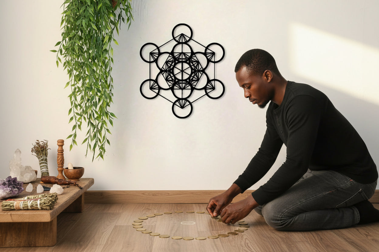 Mount it on your wall, place it above an altar, or use it as a focal point for meditation and ritual work. Metatron’s Cube is often used to clear distortion, strengthen intention, and stabilize the energetic field of a room. It pairs beautifully with crystals, candles, sound work, and breath practices.